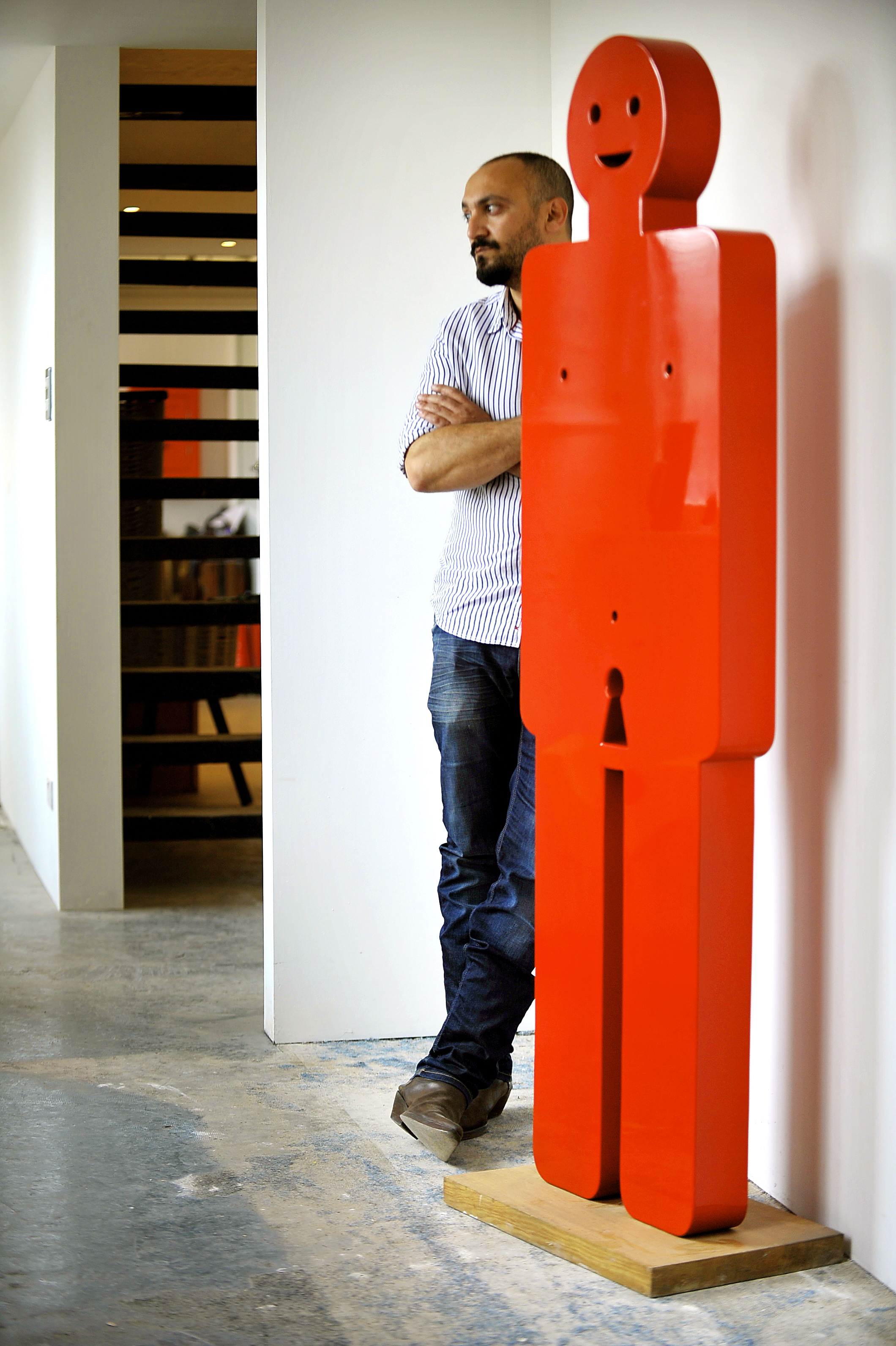 Graduating in 1997 with a first class BA degree with honors from Helwen University of Fine Arts in Cairo, Egyptian born sculptor Sam Shendi creates joyfully coloured abstractions of the human figure which, with the subtlest of indicators, hints at the complexity of human interactions.