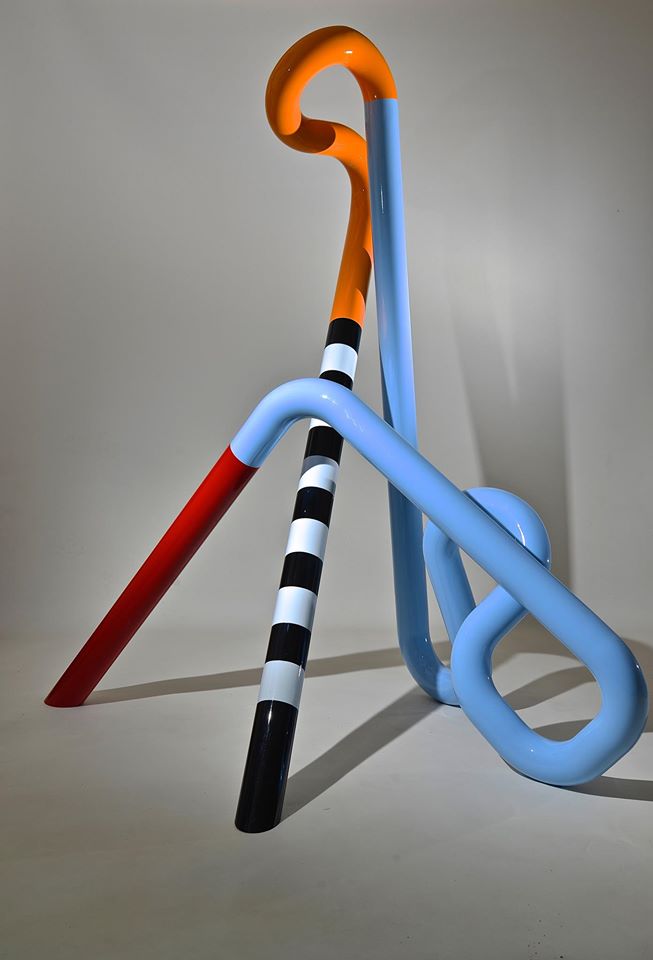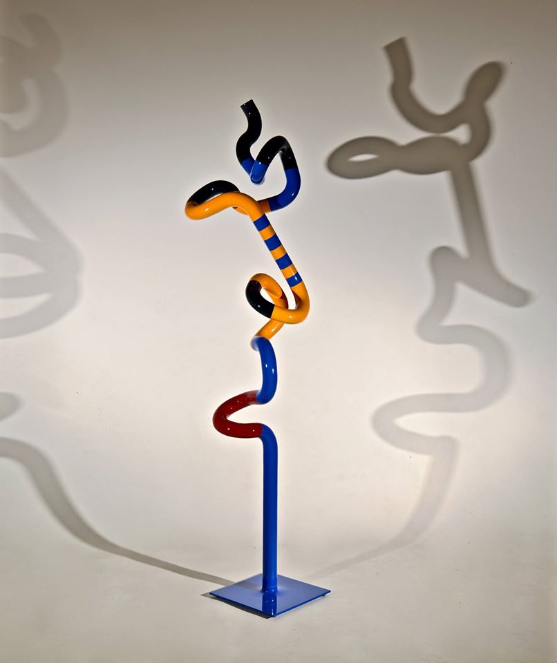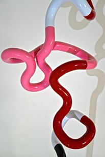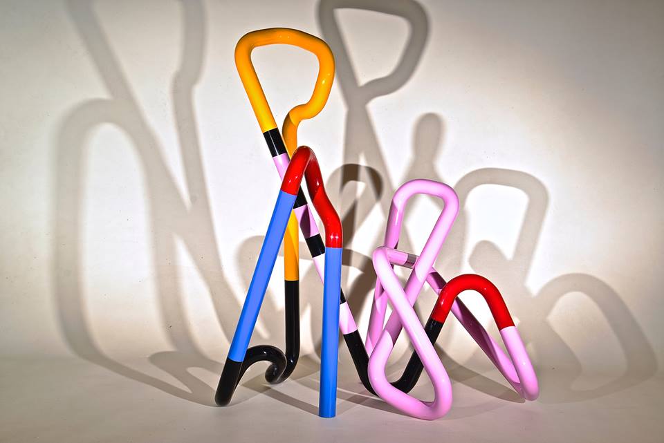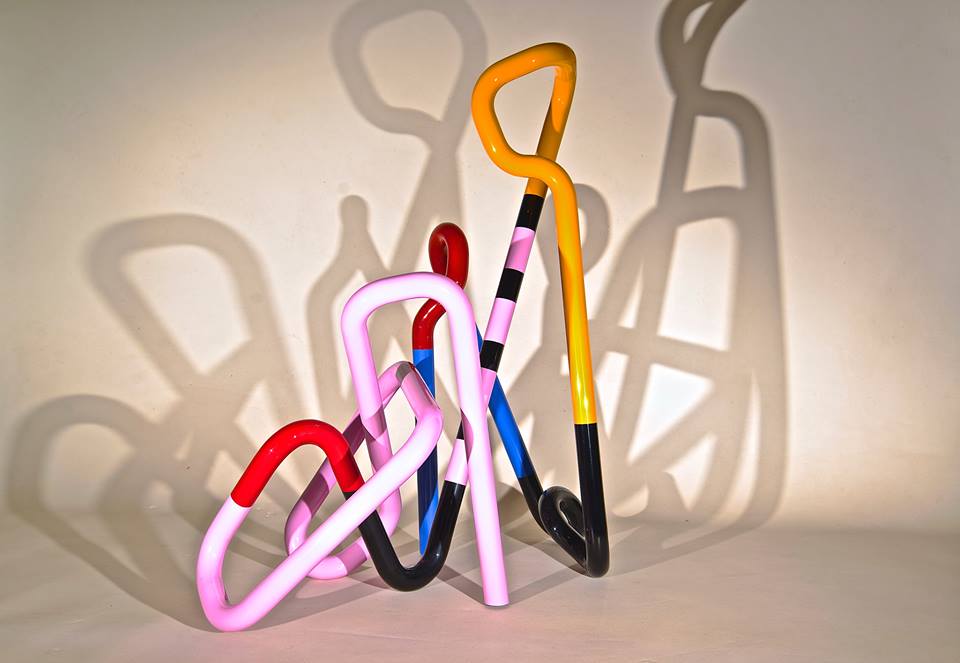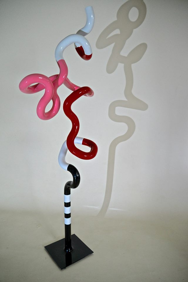 The start of this concept began whilst drawing figurative sketches, practising with paper and pencil. Looking at the sketches there was a realisation that the outline can be the sculpture its self rather than the volume within. Knowing that an outline does not naturally exist and we only see things because of what is behind it, therefore the idea of this collection is to create a non-existing outline with an existing form. Like some painters started to use a black outline round their realistic paintings. Like if you imagine the painting without the content and only the black outline. Focusing on the outline stainless steel pipes were manipulated to keep form and create abstraction. They looks like words. Born and raised in Egypt, when my husband sees them he can see the Arabic words. With a small manipulation to the outline actually the piece casts a shadow of obvious words recognised by the eye. Looking at the work through a camera’s eye, shows that the shadow and reflection of the sculptures itself writes Arabic words but still the form is, as a sculpture.