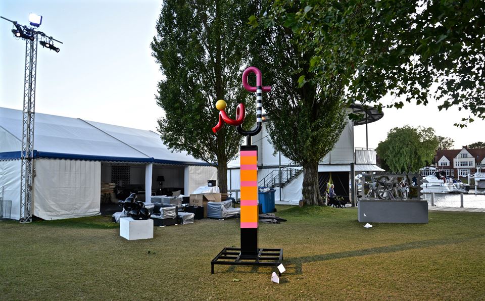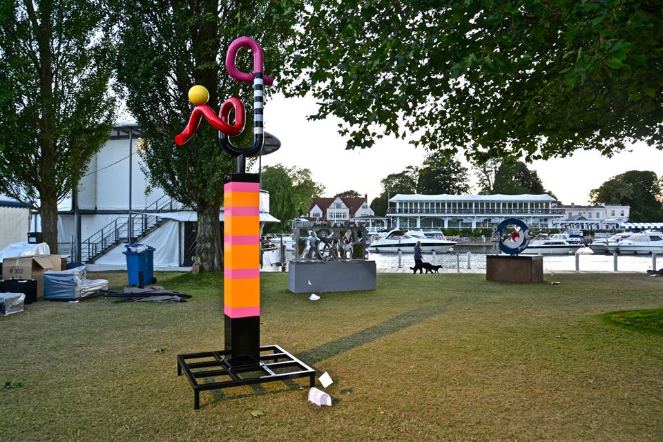 For me Henley is rowing, I raced there is 2001,spent a training camp so again the sculptures are following places of my past. My husband hadn’t realised how close to the river the pieces would be. So a good realisation that he had installed 4 pieces along the river Thames in one day. Also a couple of his sculptures are being exhibited with Hay Hill Gallery within the grounds.