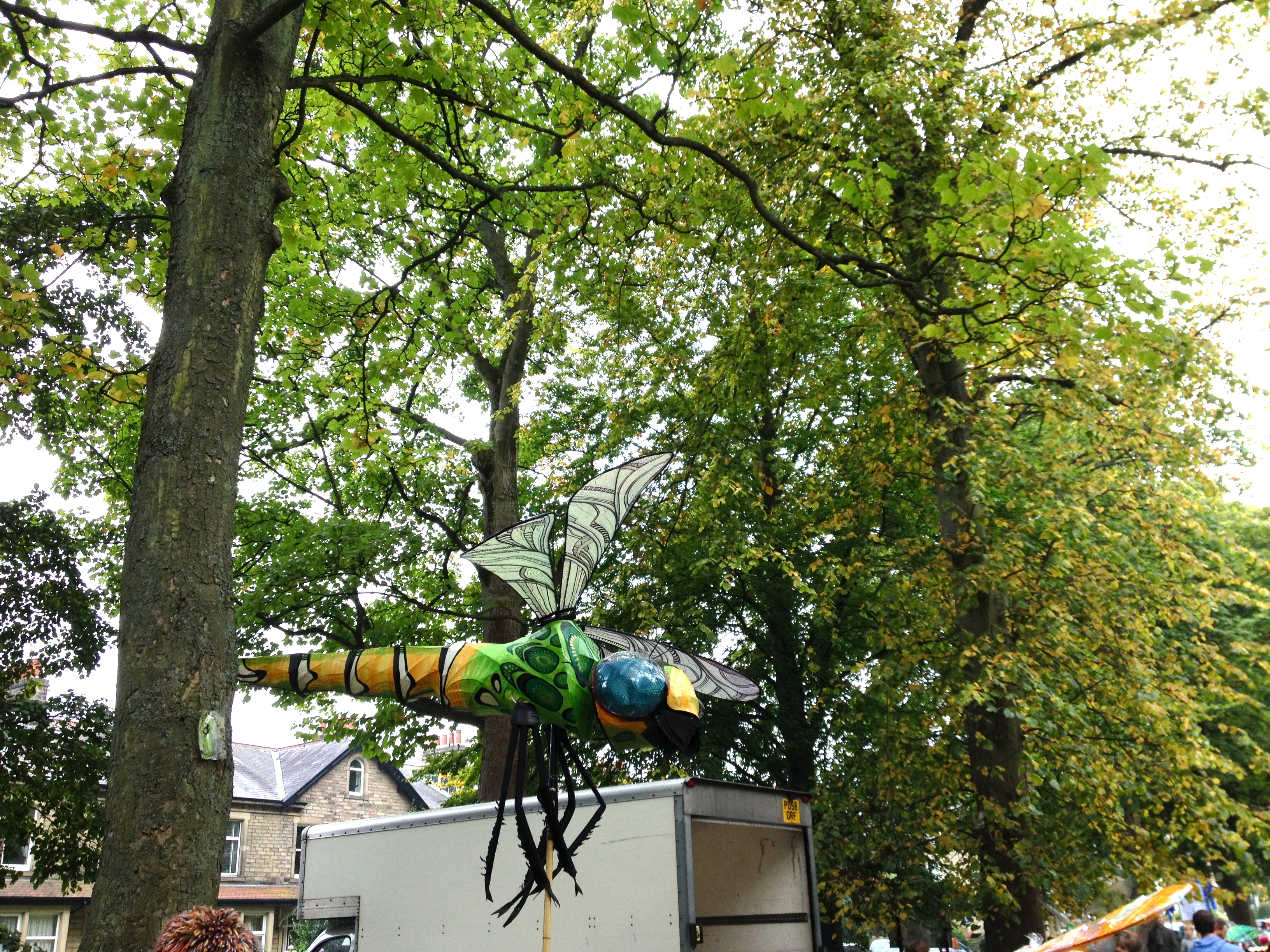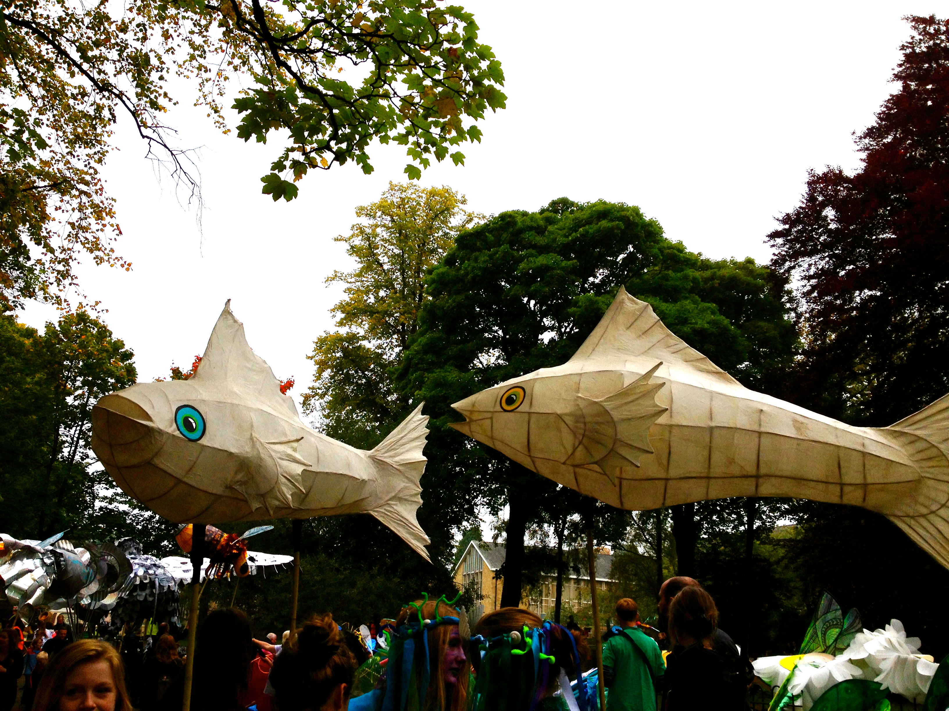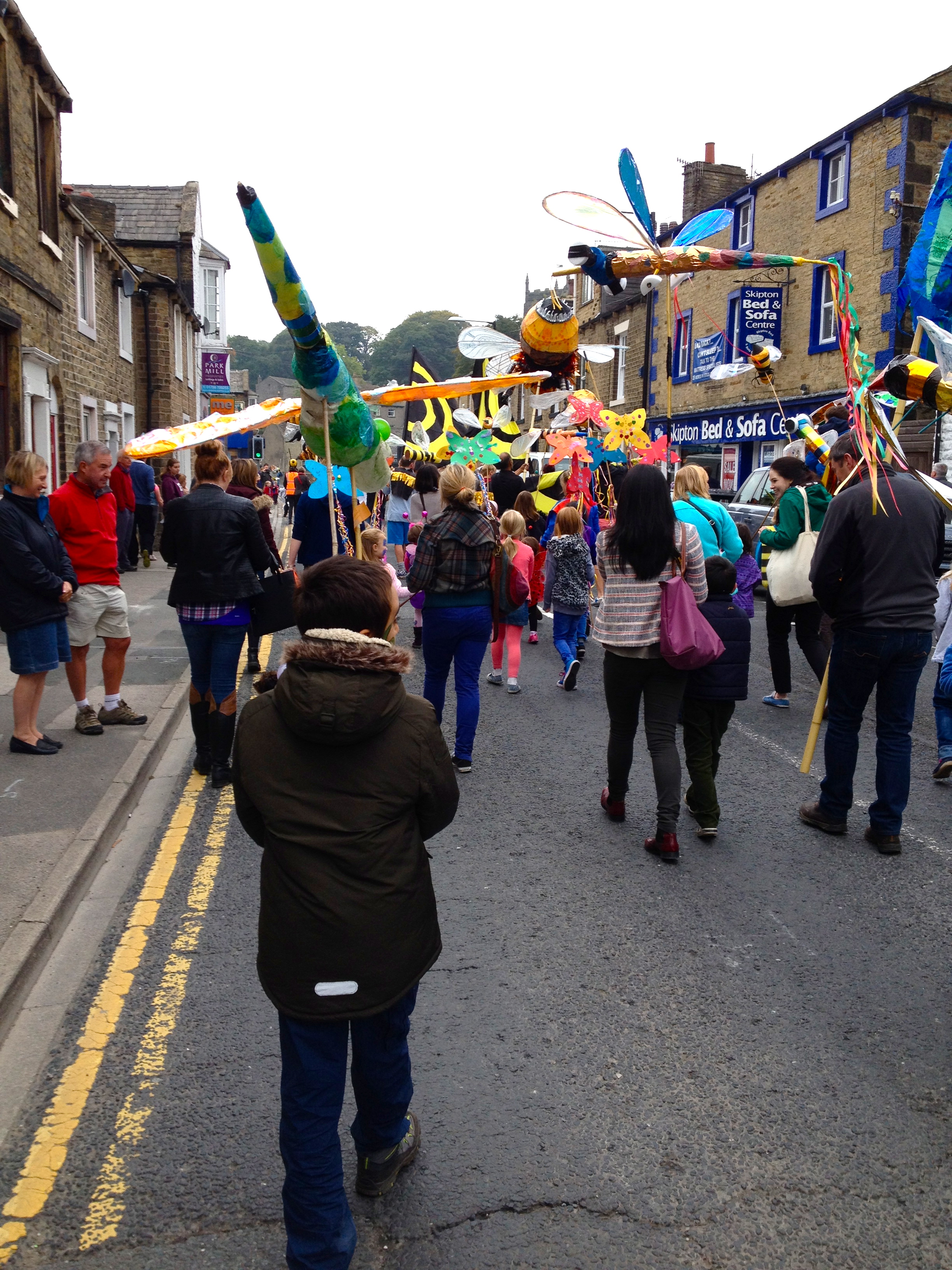 I don’t think I had properly thought through the fact that a parade meant we would be walking through the streets with the world watching (or rather a select crowd of local puppet enthusiasts and families on outings). So I walked shyly with the butterfly my younger son and I had made, as he refused to help hanging his skeleton face-painted head over his scooter crying down the high street. Whilst my eldest son forced a smile through his shivering and looked the colour of his green coat suffering with the weight of his dragon fly. I pretend not to think that anyone saw them kicking each in the other in the shins mid parade as elder son increased in frustration at younger son’s lack of enthusiasm which caused disagreements and unsettlement mid walk. Big sigh. I then had to carry 2 puppets and a scooter, queue for pizza and wait for twenty minutes whilst the boys found a pew to watch a puppet performance. I am sure it was throughly entertaining but I failed to enter the packed marquee overladen with objects.
