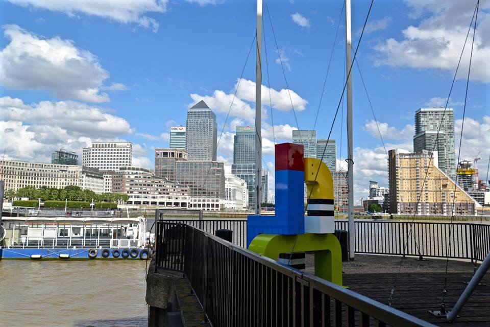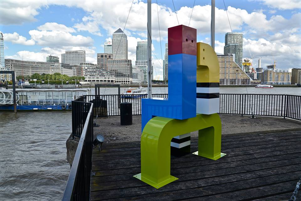 Having moved from Cartwright Hall where I have worked, ‘The Bench’ is now sat opposite Canary Wharf where quite by coincidence I did a work experience placement when I was 14 at The Sunday Mirror Magazine. Anyway that isn’t the point. The photographs as I thought, look amazing. The sculpture filling our studio now looks dwarfed by the booming business buildings behind. The sculptures colours are stunning and make it stand out against the city backdrop. Like colourful buildings themselves with the curve simply suggesting a head resting on shoulder. a reminder of how important it is to rest, be with the ones we love and sit and reflect. Most poignantly placed opposite London’s major business district and financial centre.